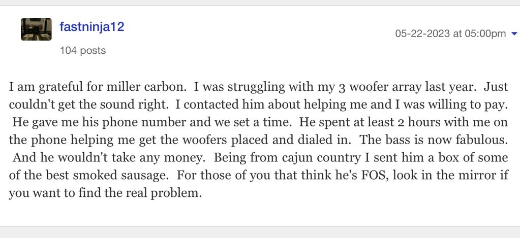 Thank you so much. Confirms and reinforces the Millercarbon company description provided for the show: your system comes first.