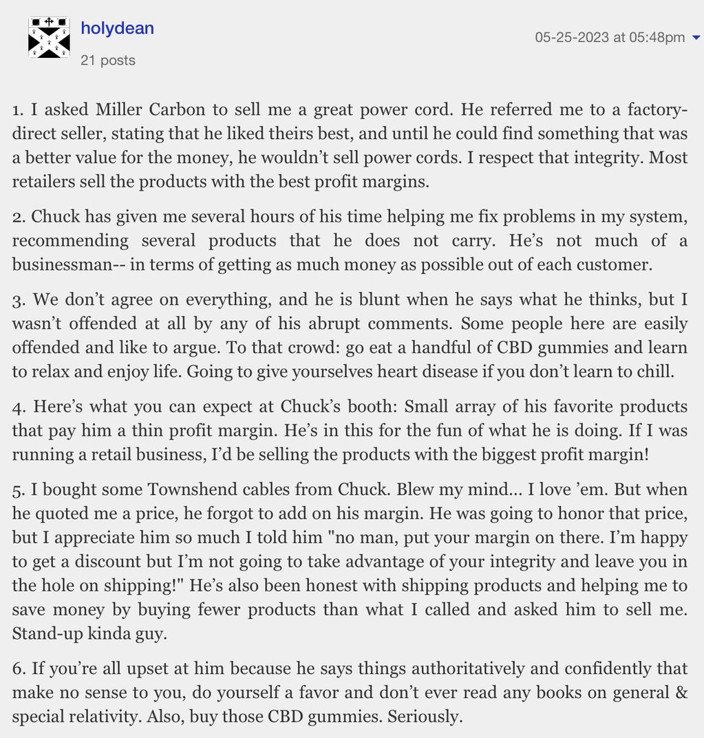 And just in case anyone wonders how such outlandish harassment is allowed, notice one name: Audiogoon Tammy. Moderator? Enabler, more like.